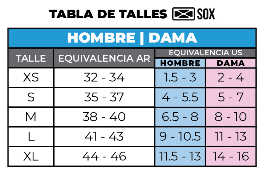 Medias SOX unisex con puño simple elastizado, tejido liso, costura de puntera extra plana, talón y puntera reforzados. Ajuste y calce perfectos gracias al agregado de spandex.